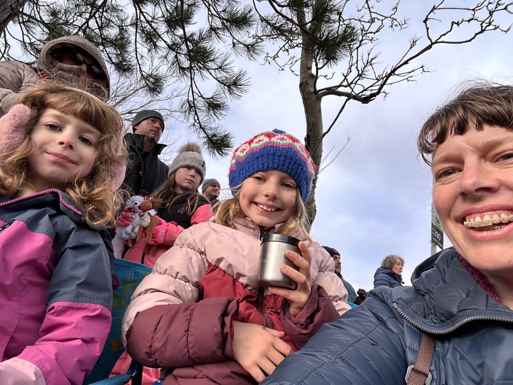 We had quite a time trying to get TO the parade, but once we finally settled in to watch, it was lots of fun! We had a thermos full of hot chocolate and homemade pumpkin bread and it was quite a show. The kids were super excited for the return of the Disney princesses and the dancing troupe all dressed up in short little Santa suits. The Big Stick Baloney mascot is always my favorite, but this year the Ukrainian music float was really great too. I feel like this little city gets so festive and celebratory for any occasion, and especially for the holidays!